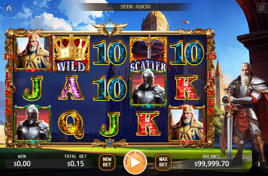 Step into the world of Arthurian Legend, a medieval-themed slot created by KA Gaming that brings the mythical tales of Camelot to life. This 15-payline game stands out with its unique King Arthur Feature, where the legendary king can randomly transform entire reels into wilds.