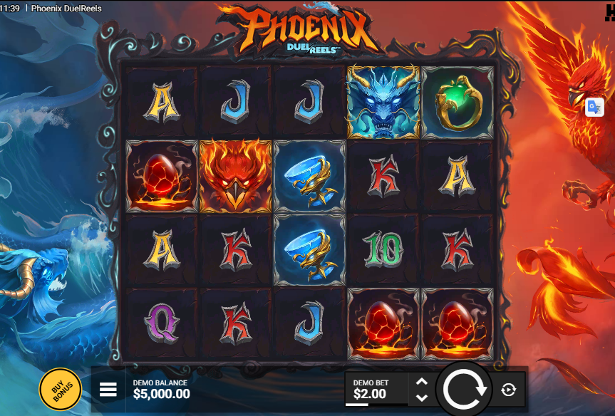 Step into an elemental clash where the mighty Phoenix battles the fearsome Water Dragon across 5 reels of intense action. This innovative slot features the unique DuelReels™ system, offering multipliers up to 200x and the potential for 10,000x max wins through its revolutionary resurrection mechanics, dual bonus games, and flexible bonus buy options.